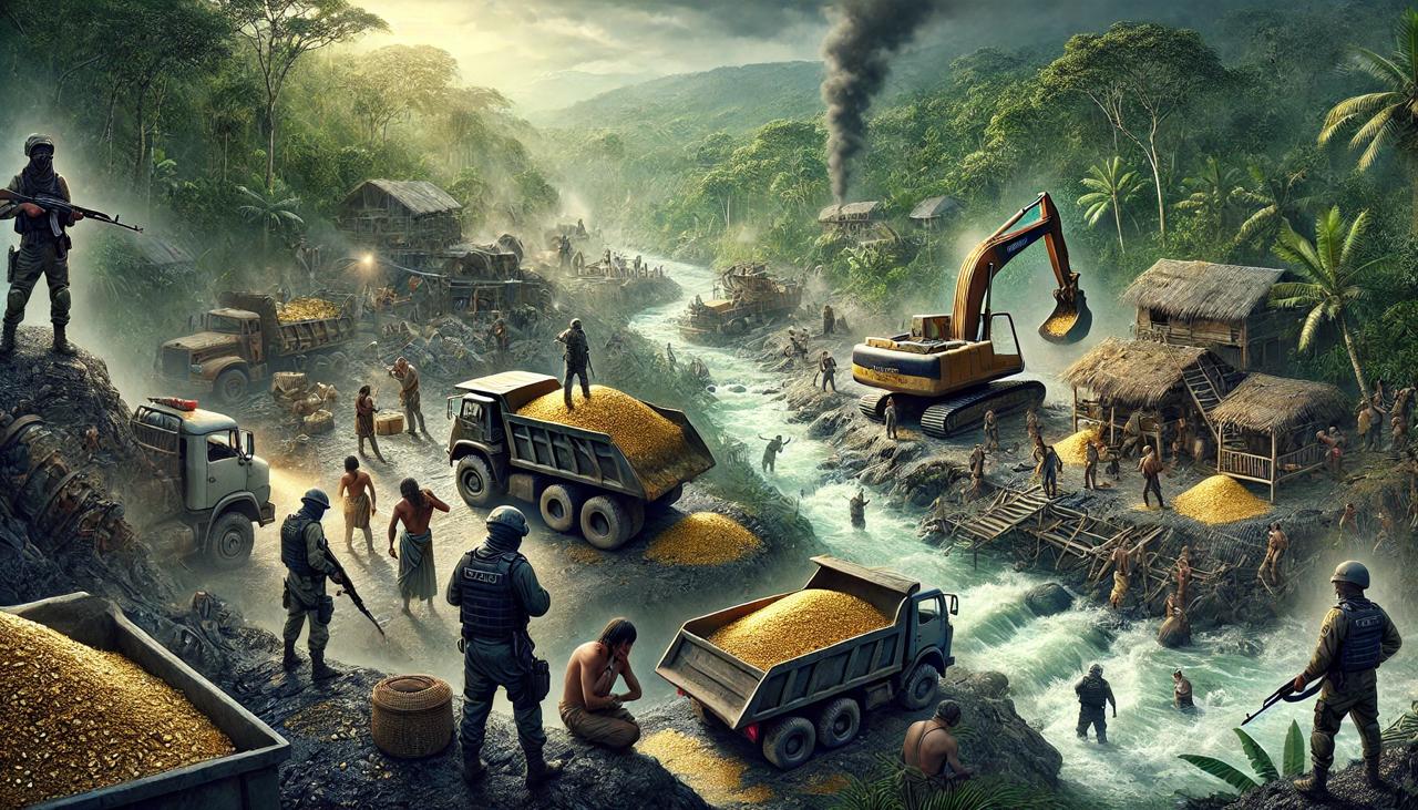 En Brasil, la minería ilegal en la Amazonia ha llevado a una crisis de salud pública debido a la contaminación por mercurio. En la tierra indígena Munduruku, se han reportado casos de parálisis cerebral en niños y problemas neurológicos severos en adultos desde 2018. Investigaciones de la Fundação Oswaldo Cruz revelaron un alto índice de mercurio en los residentes y en los peces del río Tapajós. A pesar de los esfuerzos de la Policía Federal brasileña por desmantelar esquemas de tráfico de oro ilegal, las organizaciones criminales continúan operando mediante el lavado rápido del oro y la manipulación de registros.